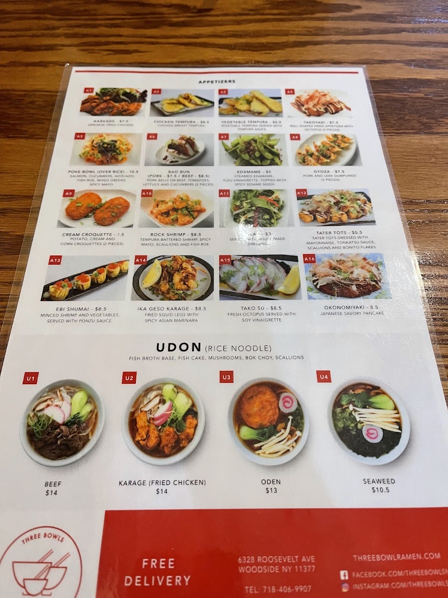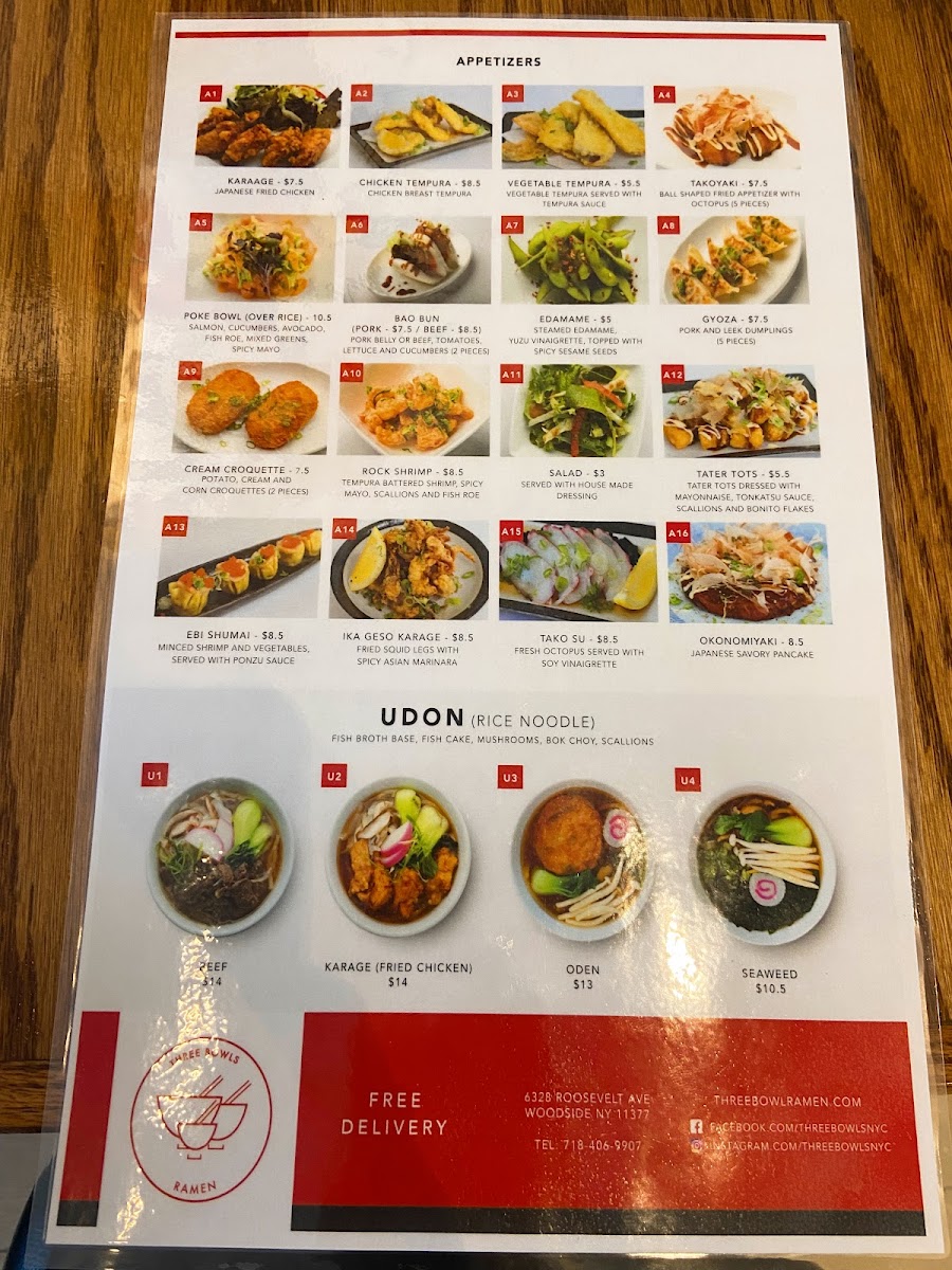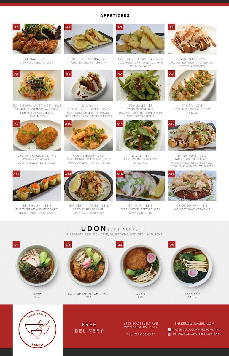 Welcome to Three Bowls Ramen, a delightful Japanese restaurant nestled in the heart of Woodside, NY. This local gem, located at 6328 Roosevelt Ave, specializes in authentic ramen and a variety of Japanese comfort foods that will leave your taste buds dancing with joy.